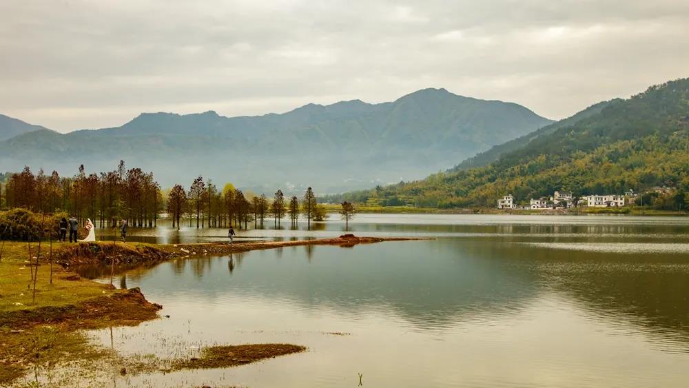 在宏村村外,有一个奇墅湖。它的美,鲜为人知。在奇墅湖畔,有一处绝美的水杉林。秋天的奇墅湖,水杉、乌桕火红的在水边摇曳,余晖之下,碧绿的湖水背靠着连绵的大山,静谧幽深,宁静而又悠远。在这里,绝对能给你带来一场视觉惊艳。