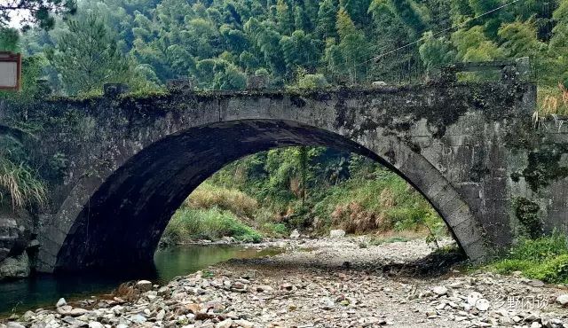 和徽州其它古道一样,依溪傍谷的路早已被公路替代。车过板桥乡樟前村,一座单拱石桥横跨溪谷之上,并连着一条石板路向浙岭北坡逶迤而上。从宽阔平整的柏油路跨上藤蔓缠绕的石桥,顿有一股穿越明清的心境,感受着当年“徽骆驼”的匆匆。石桥建于清光绪七年(1881年),近丈宽,半圆拱型,拱顶两侧分别刻有“履安桥”、“浙水灵源”,桥侧还嵌有“活水”二字。当年婺源人经浙岭后,在此顺流而下,走水路可直达杭州,贩运山货,经商求学,“履安”之名恰如其分。