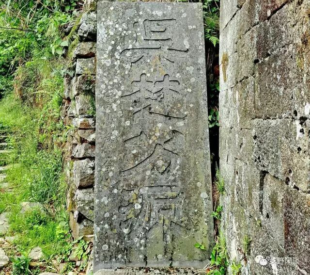 然关隘建筑已在修建公路时挖除,好在“吴楚分源”古碑还在。碑石高五尺一、宽两尺三、厚三寸,正中镌刻“吴楚分源”四个大字,隶书阴刻,遒劲端庄,左下落款“云湖詹奎”。“云湖”即为高湖山——高山出平湖之仙境,古代,高湖山建有寺庙、书院,香客学子络绎。浙岭脚下多詹姓,为詹天佑故乡,“詹奎”为何许人,我未作考究。