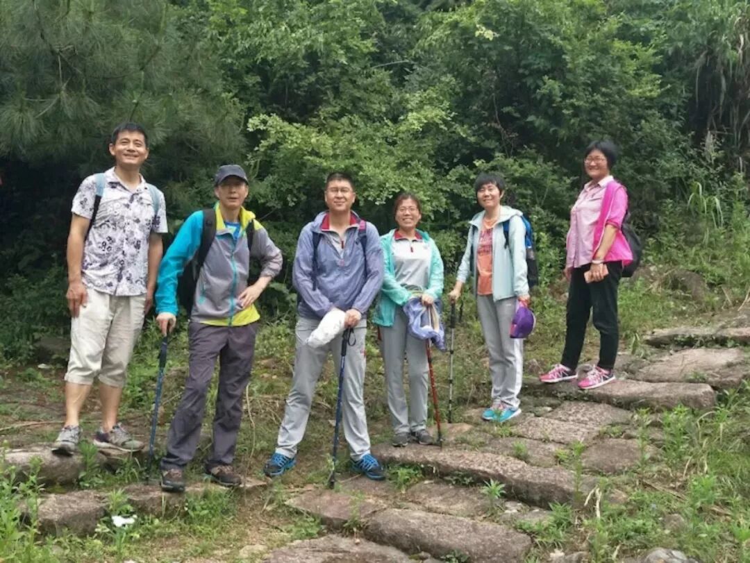 山脚处路分两边,左上七姑尖,右走水岭。因古道路程不长,我们决定先爬七姑尖,再走古道,观景徒步两不误。