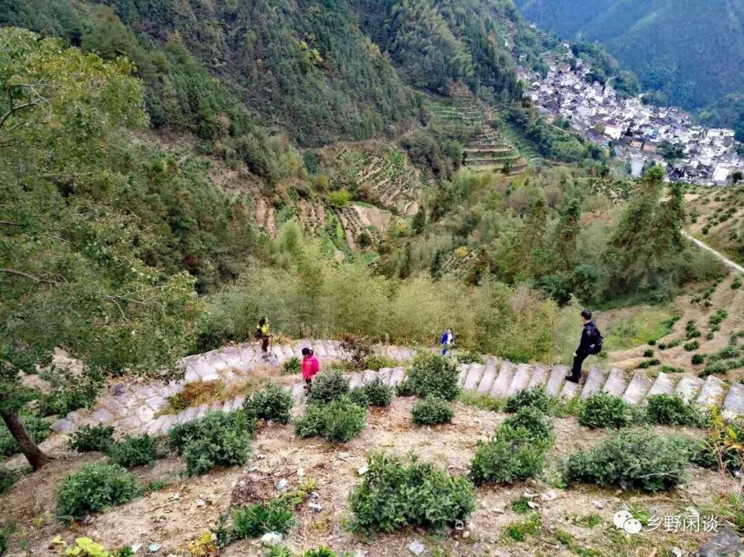 歙县南部峰峦叠嶂,山高林密,古人穿山涉水,走出一条南下通道实属不易,今年初夏,我曾走歙岭,寻觅朱熹题写的摩崖石刻——“新安大好山水”,未果,却遭遇“马小姐”(蚂蟥)“围攻”。徽州南部的白际山脉山瘠水剐,但植被稠密,山地阴凉潮湿,蛇蚓横生是自然而然的。户外行走,遇上几枚蚂蟥无伤大碍,倒是附近的贤源岭、万岁岭两条古道时有毒蛇出没,路边草蔓箬叶,青蛇缠绕已司空见惯,夺命“五步龙”也偶会盘踞路中。因故,挨到深秋万物凋零之际,我们才去探秘歙岭北段的这条“鸟道”。
