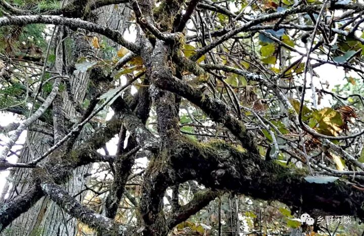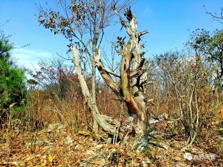 在这个季节里,连岭上的一草一木又在孕育新的一年,轮回着生命的色彩。但总有那些熬不过寒冬的朽木,像一尊雕塑,扎根在岩石缝里,千年不朽。从远古走来的连岭古道蜿蜒在山脊线下,一切都显得那么苍老:磨砺得失去棱角的路面已经变成黑褐色;早已塌落的路亭残址被高大的树木挤得更加凌乱;即使是手臂粗的灌木,它那挂满青苔的沧桑似乎已在这里等待了千年;碗口粗的猕猴桃藤被岁月的风霜熏的漆黑粗糙,却还支撑着几十平米的枝繁叶茂,和那缀满枝头的咖啡色果子。