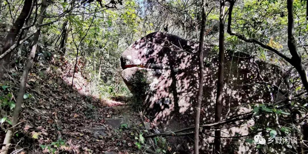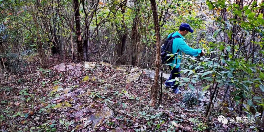 一般情况下我们也只有在这秋冬万物萧瑟的季节,才来探秘这些荒芜的古道,虽然这些荆棘和草籽会给我们带来些许麻烦,但一般不至于造成太大的伤害。但既然是“一般”,也就会有意外。当我们攀高到海拔1000多米即将登顶之际,跟在我后面的一位同行者无意间翻开路面一块晃动的石板,没想到下面竟盘着两条粗壮的毒蛇,灰身红尾,正懒洋洋地晒着太阳。好在到了这个季节,蛇类也没那么灵敏,缓缓蠕动几下也就爬走了,彼此并未造成伤害。