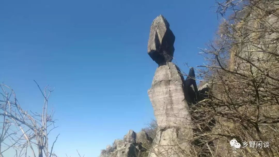 透过红黄相间的树丛,蓝天下那一丛突兀而出的石林触手可及,但我们走了一个多小时仍未见到“阿诗玛”,却在返回时一条流瀑般的乱石滩下,看到那尊轮廓分明“脸部”,以及修长丰满的美女“倩影”。此刻已下午两点多,时间让我们只能留下遗憾而去。不过这样也好,免得惊扰了这尊美丽的女神。让她静静地兀立在这海拔1230米的九龙峰下,在这岁月的深处等待她的“阿黑”归来。