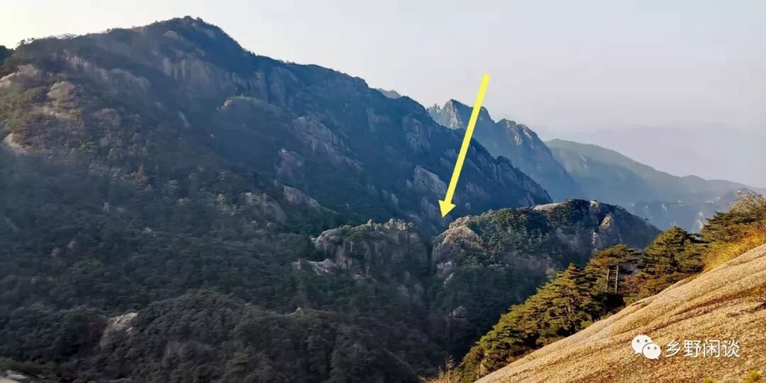 前阵子听黄山园林工作人员说,从钓桥到天海确有一条古道,他们“摸山”时走过其中片段,个别地方还有古人在崖石上凿出的“脚印”及搭砌的石阶,但大部分是“四不像”走的路。每年秋冬万物萧瑟、虫蛇入眠之际,园林工作人员都会开展野外调查活动,甄别古树奇石,处置枯死树木,预防松材线虫等等,俗称“摸山”。穿山越崖的“摸山”道路则戏称为“四不像”走的路,在徽州民间也叫“野猪路”。