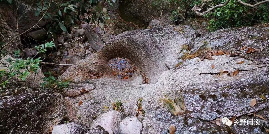 黄山还很多类似的“井”,汤岭关南北榆花溪、桃花溪的诸多臼状石井,在云际峰下的溪谷里我们也发现了一个石臼,传说是当年轩辕黄帝炼丹时留下的药臼,也有的说是第四纪冰川运动留下的印记,还有的说得更干脆,大水冲击砾石磨出来的。水晶井在这海拔1500余米的悬崖之中,既无冰川,也无流水冲刷,且还缀满晶莹剔透的水晶石,确为黄山奇观?黄山的自然奇观无处不在,我们今天的任务是探秘古道。