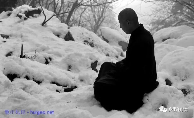 在黄山,重阳日正值仲秋,温暖舒适,大雪概率微乎其微。关于“雪庄”的来历还有另一说法。相传,雪庄酷爱山水,幼时曾梦见自己住山情景,成年后寻觅多年,终于来到黄山东海的合掌峰下。飘渺之间,竟发现还有一间空置的庵舍,虽破败不堪,但聊胜于无,便找来附近残落的树皮覆顶,上压片石,以作习禅之所。雪庄每天足不出户,枯坐默照,修心性,合天人,渐入忘我无我之境。某夜突降大雪,雪庄积雪盈身竟不移,次日山僧偶见,万分讶异,“雪桩”由此而来,寓“雪峰趺坐、法相庄严”之意。