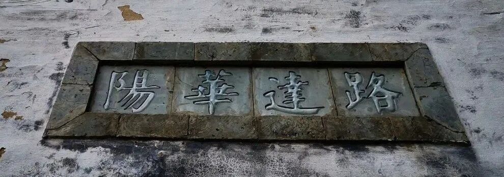 半岭虽不高,站在岭头,南看萌坑,北望汪坑,青山环翠,粉墙黛瓦,心底的敞亮是油然而生的。垭口两峰夹持间,宽约五六米,古时应有建筑,现已片瓦不存。南下十几米处有一茶亭,依山临路,砖木结构,卷棚式屋顶,南北穿心开门。亭门青砖转拱,拱顶分别题额“路达华阳”、“径通古歙”,青砖印刻。古道绕亭而过,与路亭两面扇形窗户正对,过往脚夫,即使坐在亭内抽烟喝茶,放在路边的货担也能尽收眼底。窗户及门阙上方都画有一副黑白壁画,虽墙面石灰斑驳脱落,但壁画内容尚可辨认。其中南门上的一幅壁画很有意思,一个插满鲜花的花瓶边放了一把大茶壶,仿佛告诉行人,亭内免费施茶,走过的路过的进来歇口气,喝口茶,抽筒烟,倒壶水再走。
