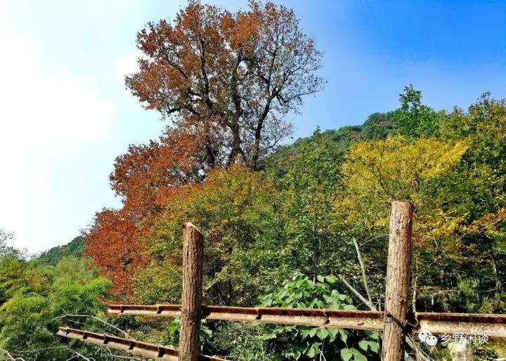 遗憾的是这样精致的古道,现在已近荒废,且让我们大跌眼镜的是,眼前这干干净净的古道,“清道夫”竟是乡民放养在山的黄牛。春耕之后,它们一直群居在这条古道上,把路面及两边的青草吃得一干二净,当然它们的排泄物也毫不避讳落在路上,部分路面石板已被踩得歪歪斜斜的。但不管怎样,走在这样的古道上,总比钻草丛踩荆棘轻松,我们也得以腾出眼睛来欣赏这迷人的秋色。路边随处可见果实,红的红得热情,黄的黄得高贵,紫的紫得迷人,蓝的蓝得诱惑。远处的枫香,有的翠绿依旧,有的涂上淡红,有的已经焦黄,有的已黯然凋落,只有风口上那几株日照充足的大树,才红得像一支巨大的火炬。当然它们生命年轮的起点和终点是一致的,即使这样一树靓丽的红叶,经历了冬天的冰雪、春天的孕育、夏天的炙烤、秋天的霜寒,过了这短短十几天的火红,也将和所有落叶一样,化作一捧尘土,去滋养来年的生命。人和树一样,大部分时间总在赶路,总在为那个出彩的瞬间奔波着,但真正能够出彩的微乎其微,就像山坳里那些没有火红就枯落的枫叶一样,平平淡淡,轮回一年。