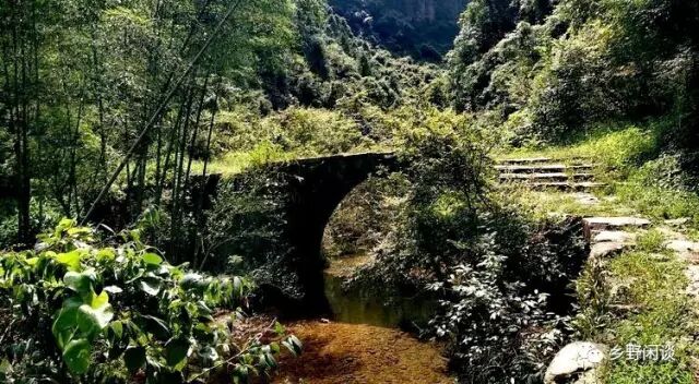 穿过古道入口不远处的竹林,即进入一段逼仄的峡谷。峡谷两边,山峰壁立,壁立的山峰又绵延成片,势如刀劈。蜿蜒跌宕的溪水在谷底的“夹缝”中缠绕着大大小小的卵石,从崖壁下来的雨水将缘溪而建的古道冲洗得干干净净,没有丁点尘土。