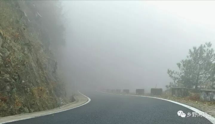 公路边上,那块写着“蓝天和白云交际的地方——白际”的牌子同样被浓雾包裹着,这首点睛人间仙境的情诗,也仅剩下望梅止渴的撩情了。
