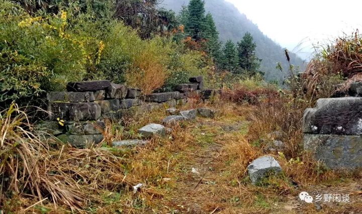 一般“官道”台阶高度为十公分左右,白际岭古道大部分为就地取材的山石铺设,且未开凿平整,所砌台阶高度都在二十公分左右,个别路段甚至高达三四十公分,其强度可想而知。当我们到达“两里半亭”时,行走在我们前面的另一批徒步者已在此望路兴叹,随即打道回府。