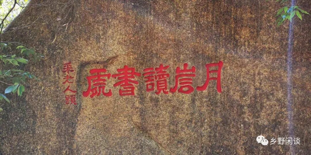 古道经庵前左行十多米,为一处古石刻群,俗称“梅屋石刻群”。“梅屋”不是屋,是两块天然巨石相倚而立形成的石洞,古道穿洞而过。在顶棚之下镌有“梅屋”、“江绍莲题”字样。此处未见梅树,不知“梅屋”是何来历。石洞左边石壁上刻有“月岩读书处”、“采老人题”,据说南宋右丞相程元凤年少时曾在此读书,晚年又退居于此,丞相源由此而来。程元凤宦海沉浮几十年,后又于此归隐,在此刻字留声,个中因果得失耐人寻味。“月岩”另一侧刻有“钓月台”三字,边倚巨石,石上平坦如砥,下凌空丈许,传为古时僧侣居士读书作诗之处,彼时用作读书品茶的石桌尚存。月亮总让人想到静幽之美,古人趺坐石上,皓月当空,风鸣蝉嘶,吟诗抒怀,钓月洗心,是何等心境!