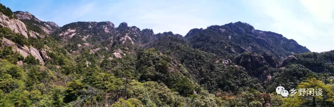 经常户外的人都知道,在谷底穿越时,是很难准确定位方向的,尤其黄山这种地质条件复杂、林木茂盛的山谷中。这也是每年都有个别驴友擅自闯入尚未开发区域,而迷路的根源所在,诚如我们去年探寻白云溪古道那样,如无专业工作人员带路并放绳下山,估计也得迷路。下午我们回到“瑶台”处,回望现在翻越的这条山脊,才知正是白云溪上的“龙虎斗”景观,不知是否为前文所说的“飞鱼石”?“龙”与“虎”之间的的树木不正是所描述的“鼓鬣排空”状吗?