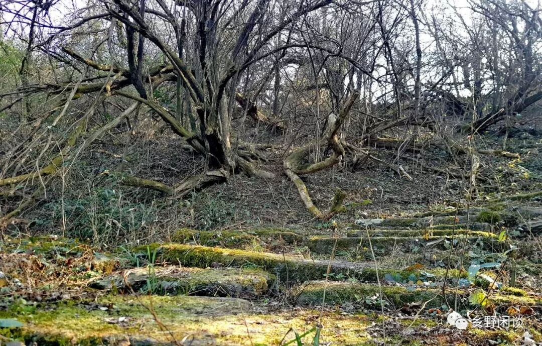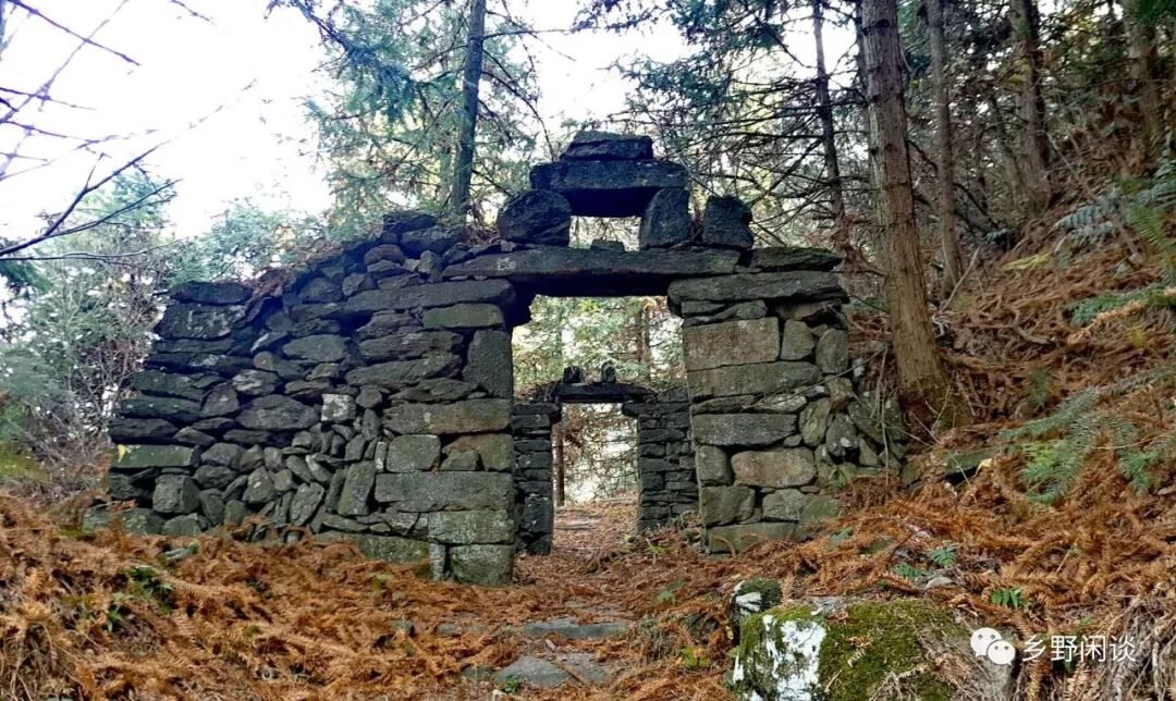 此时的映山红只剩枝头被寒霜染成绯红的叶子,稀稀拉拉的,并还在随着山风的吹拂飘零而落,估计再下一两场冬雨,这些枯叶将全部跌落到地面,化作春泥,去滋养来年的绽放,唯独留下赤条条的枝丫,独自去面对即将来临的冰雪。在临近岭头之际,我们却意外地邂逅了一丛反季节盛开的映山红。这些错过春天的红花,寒霜使它们不再水灵,锦缎般的花瓣上还有斑驳的枯点,但在这蓝天之下,在这枯裸的灌木丛中,它足以点亮一个季节的记忆。和反季节的映山红不同,岭头那些残垣断壁的建筑只代表一个时代的印记,不可能再有春天了。我现在能做的,就是在有限的史料里,尽量将它们抄录下来。