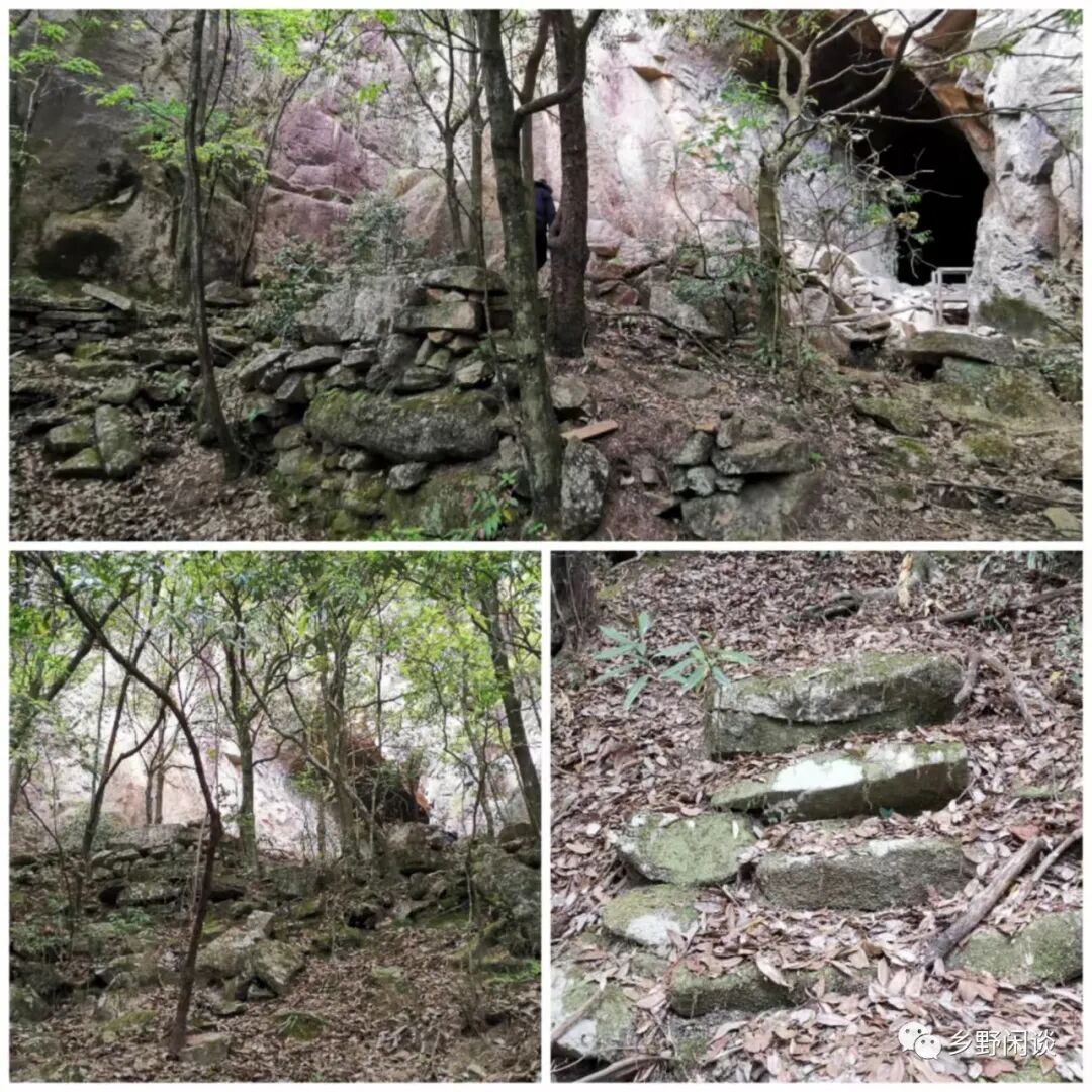 洞口左侧下行约10米处,有两层石塝磊砌的梯地,与雪庄所画“圣僧洞”外的“菜园”吻合。