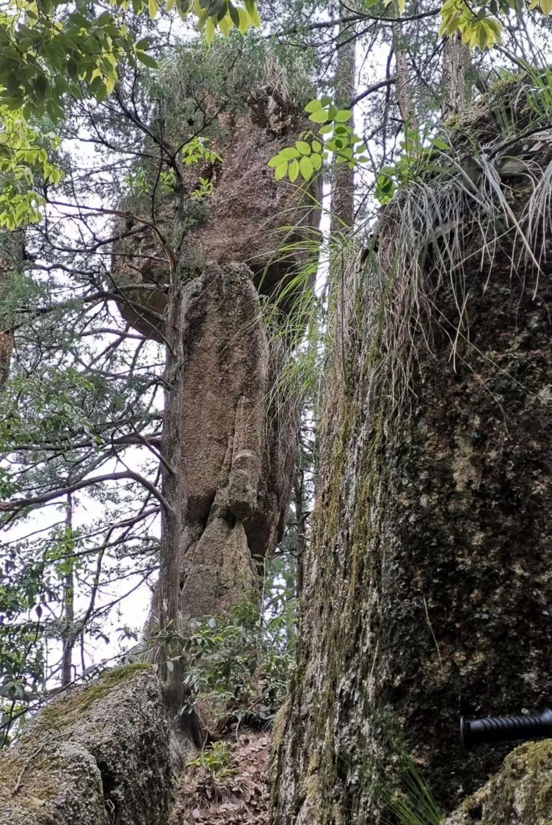 另,现“仙人翻桌”与“牌楼石”隔坳相对,且下部林木遮蔽,不甚明显,曾有人考据,认为古人所记“牌楼石”即为现在的“仙人翻桌”,按徐文“有石丛立,下分上并”所记,应与“仙人翻桌”相去甚远。(2022年5月7日)