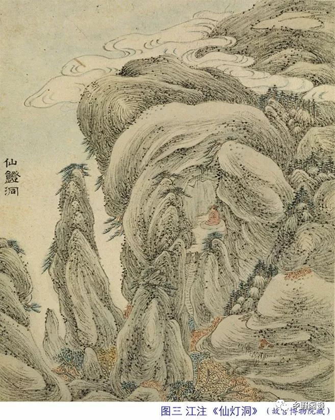 石径已迷红树密,萝龛犹在紫云凝。钵盂峰下留丹灶,锡杖泉边隐圣灯。从此旧庵遗迹畔,月楼霜殿一层层。”明清以来,僧侣雅士来山,前往仙灯洞者无数,因此留下大量诗文,徐霞客二游黄山,慕名而来,在其游记中写道:“洞南向,正对天都之阴。僧架阁连板于外,而内犹穹然,天趣未尽刊也。”历代画僧在此留画颇多,黄山画派代表渐江、江注、雪庄等均画过仙灯洞,其中渐江、江注所画现收藏于故宫博物院。