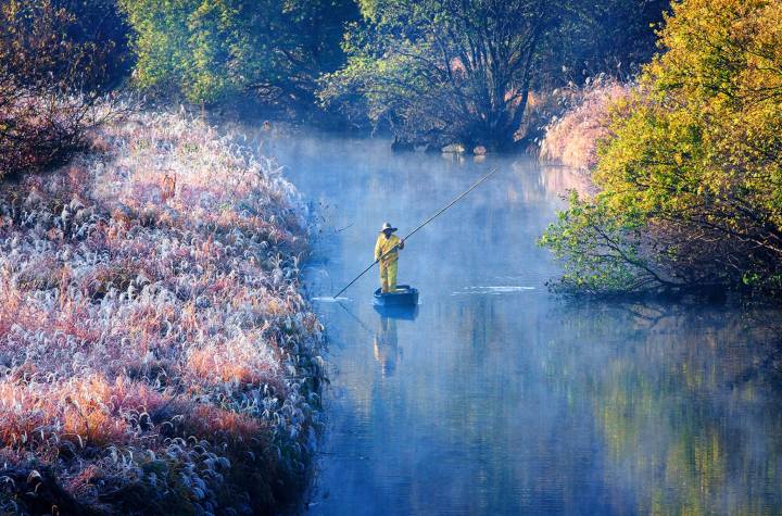 碧云天,黄叶地,秋色连波,波上寒烟翠。山映斜阳天接水,芳草无情,更在斜阳外。