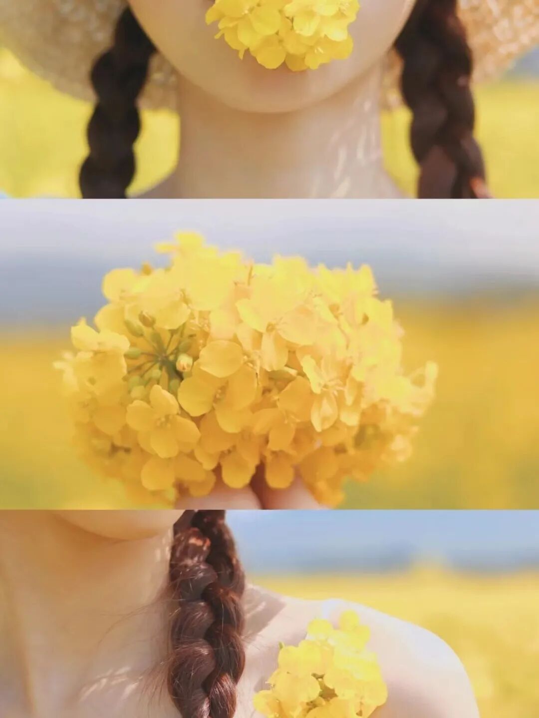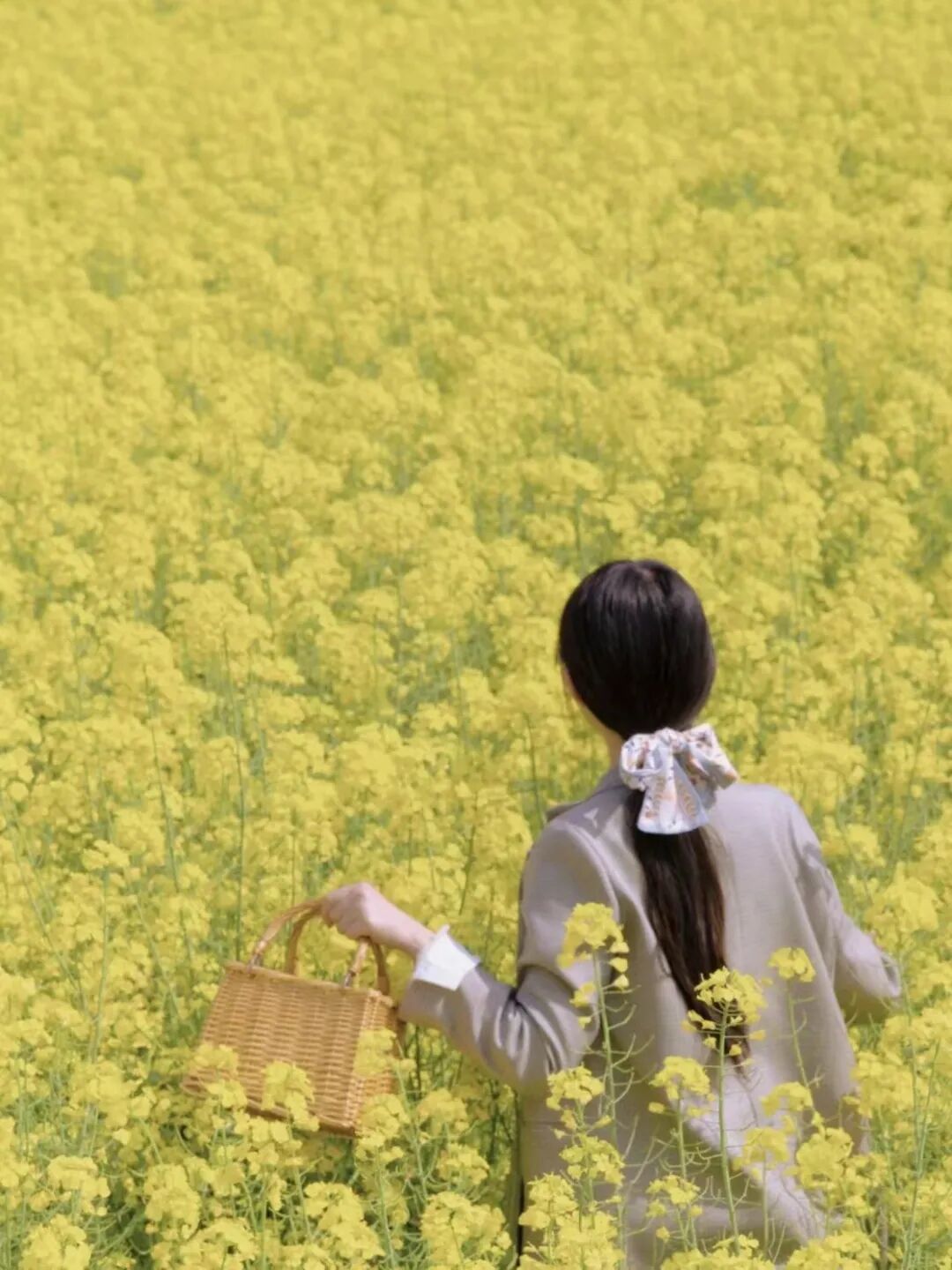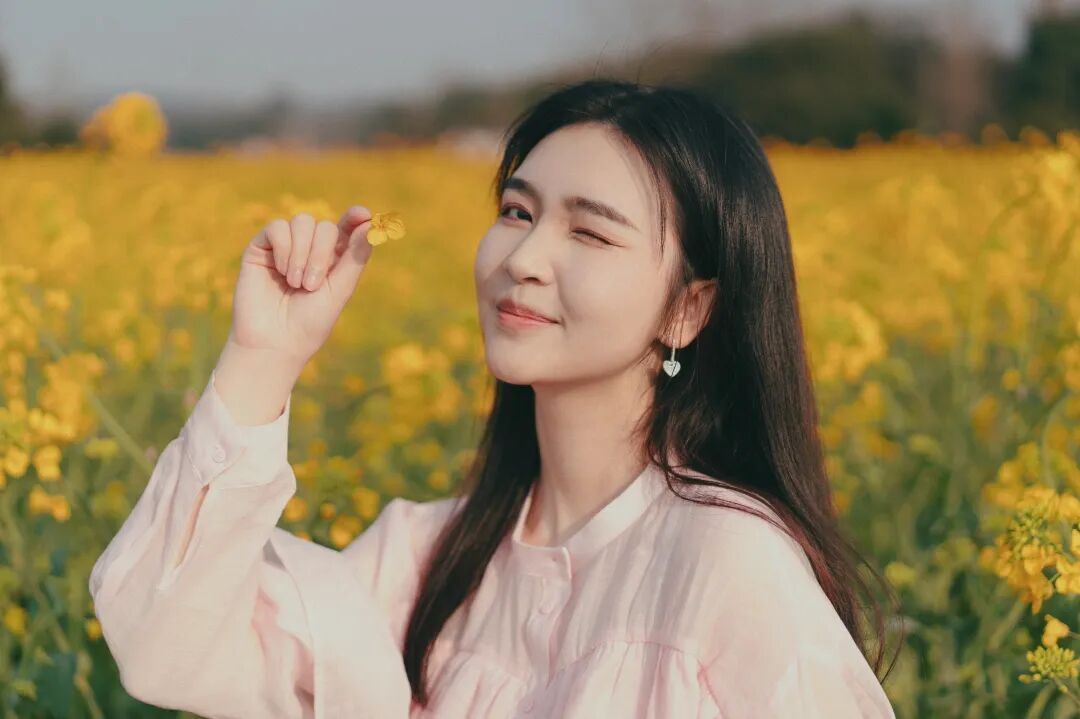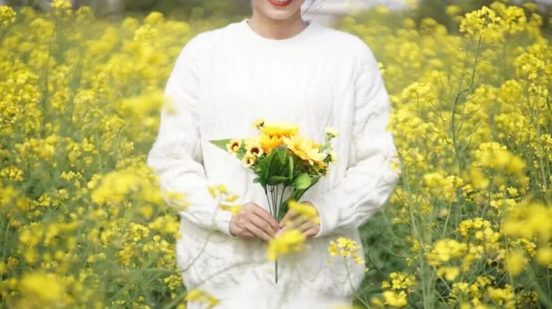 大家可以用自己的手跟周围的油菜花互动,可以提前拿自己准备好的花束,同色系的最好,拍自己手拿花束的半身照片。