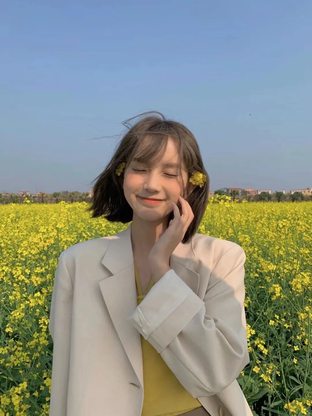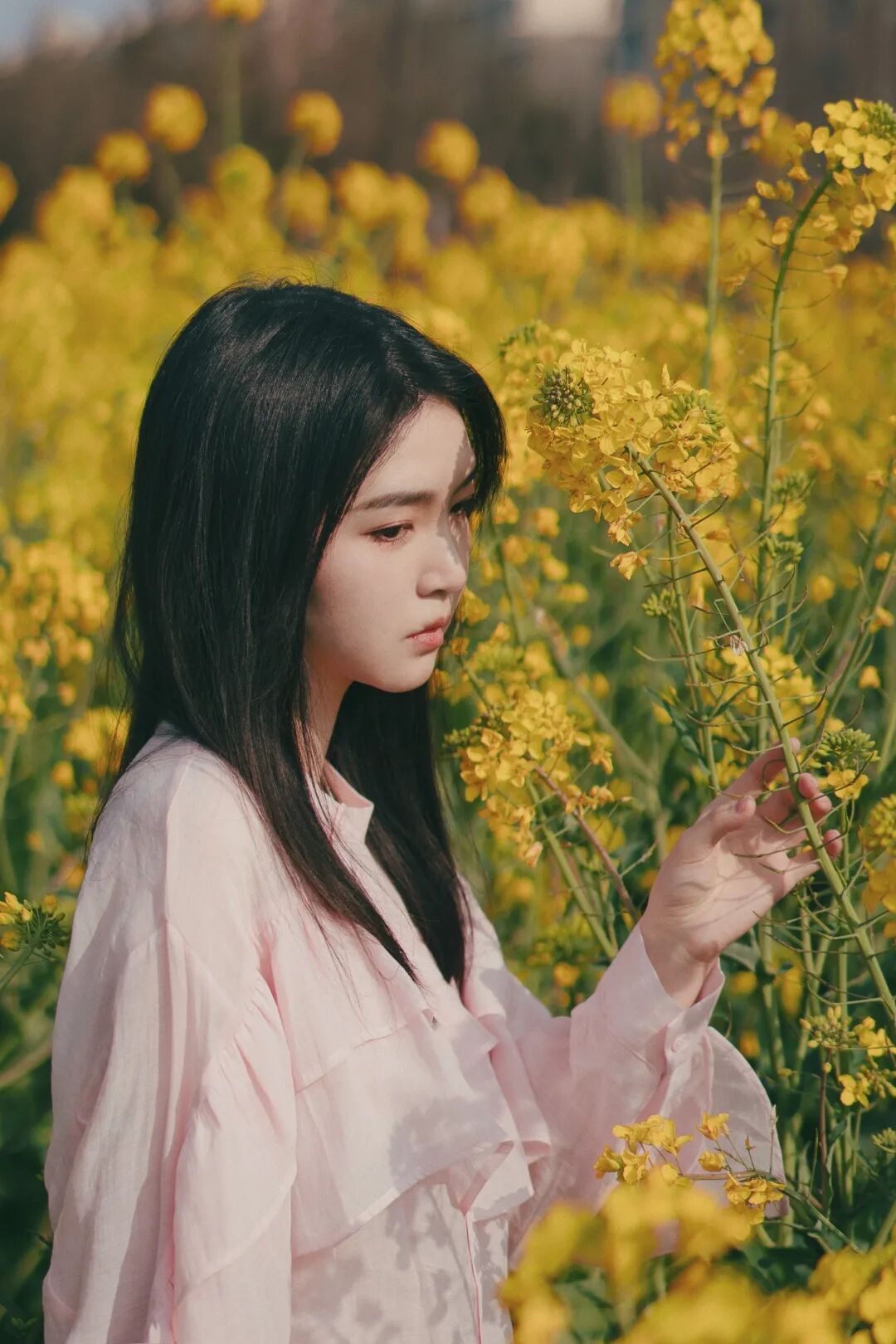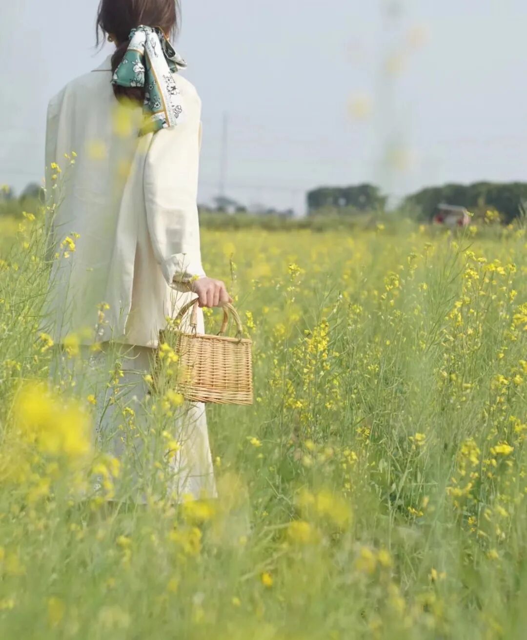 大家可以用自己的手跟周围的油菜花互动,可以提前拿自己准备好的花束,同色系的最好,拍自己手拿花束的半身照片。