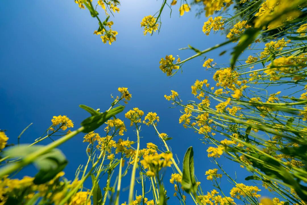 拍摄油菜花的局部特写,建议用俯拍的角度,这样油菜花的细节可以更多的展现出来。俯拍油菜花局部