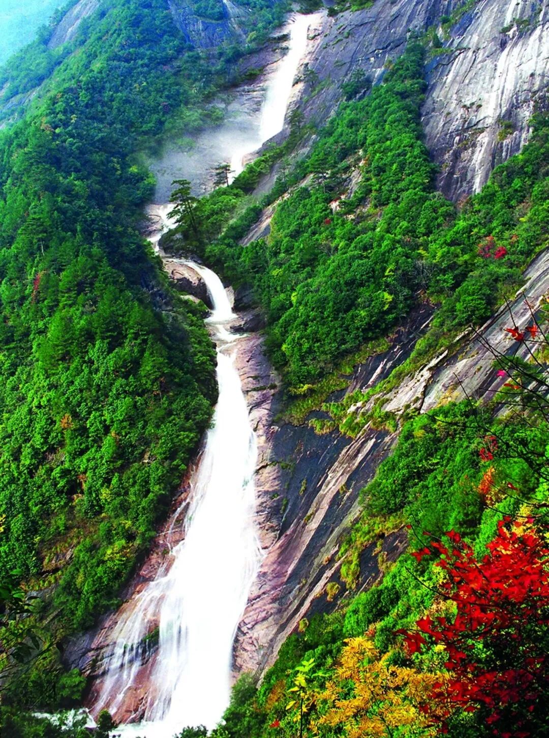 九龙瀑:九龙瀑景区位于汤口镇山岔村,有“黄山第一大瀑”之称,一瀑九折,一折一潭,形成九瀑九折的壮丽奇观。