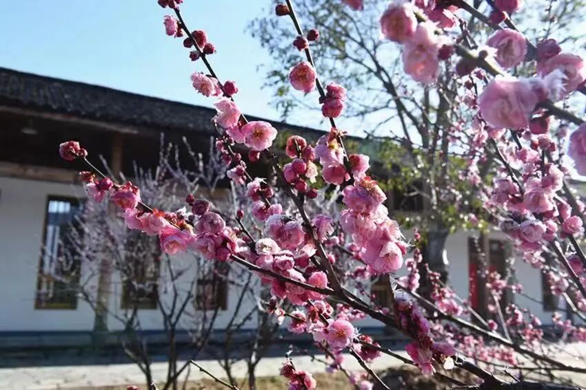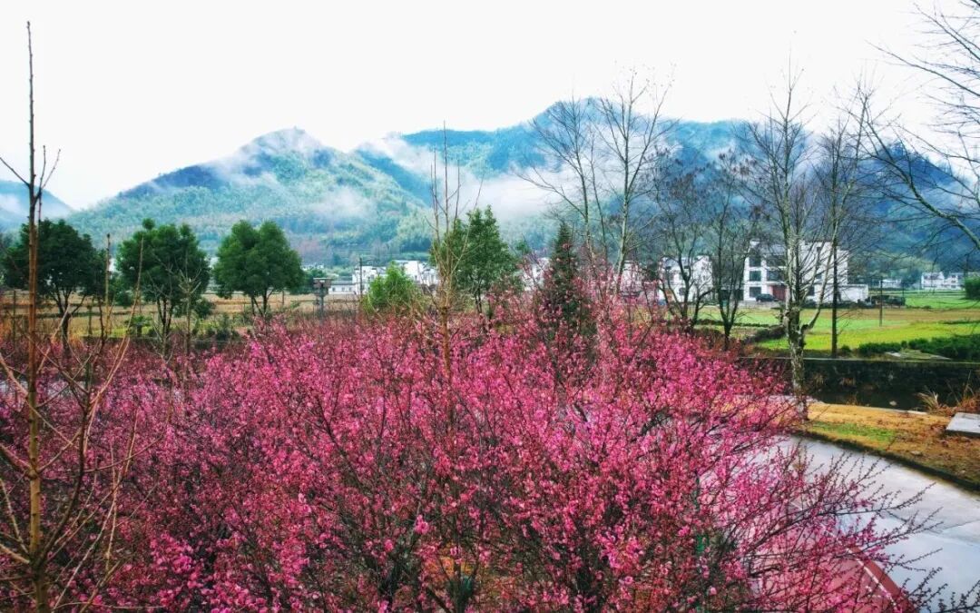 “闻道梅花坼晓风,雪堆遍满四山中。何方可化身千亿,一树梅花一放翁。”位于汤口镇的黄山花谷,是春季赏梅的好去处,谷内种植了百余种梅花,一朵朵小的、不起眼的梅花汇成粉红的花海,尽染山谷,微风吹过,发出阵阵香味,芬芳扑鼻,远远地都能闻到。
