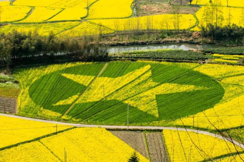 位于黟县美溪乡,距县城36公里,大山深处,远离城市的喧嚣,天蓝蓝,水清清,油菜花海随着地势起伏拾级而上,一层层,一簇簇,延伸至山腰,与打鼓岭高山杜鹃相映成趣。
