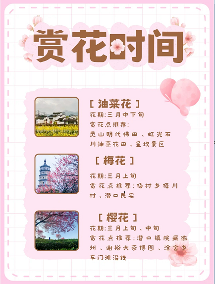 📍赏花点推荐丨潜口镇院藏徽州、谢裕大茶博园、洽舍乡车门滩沿线